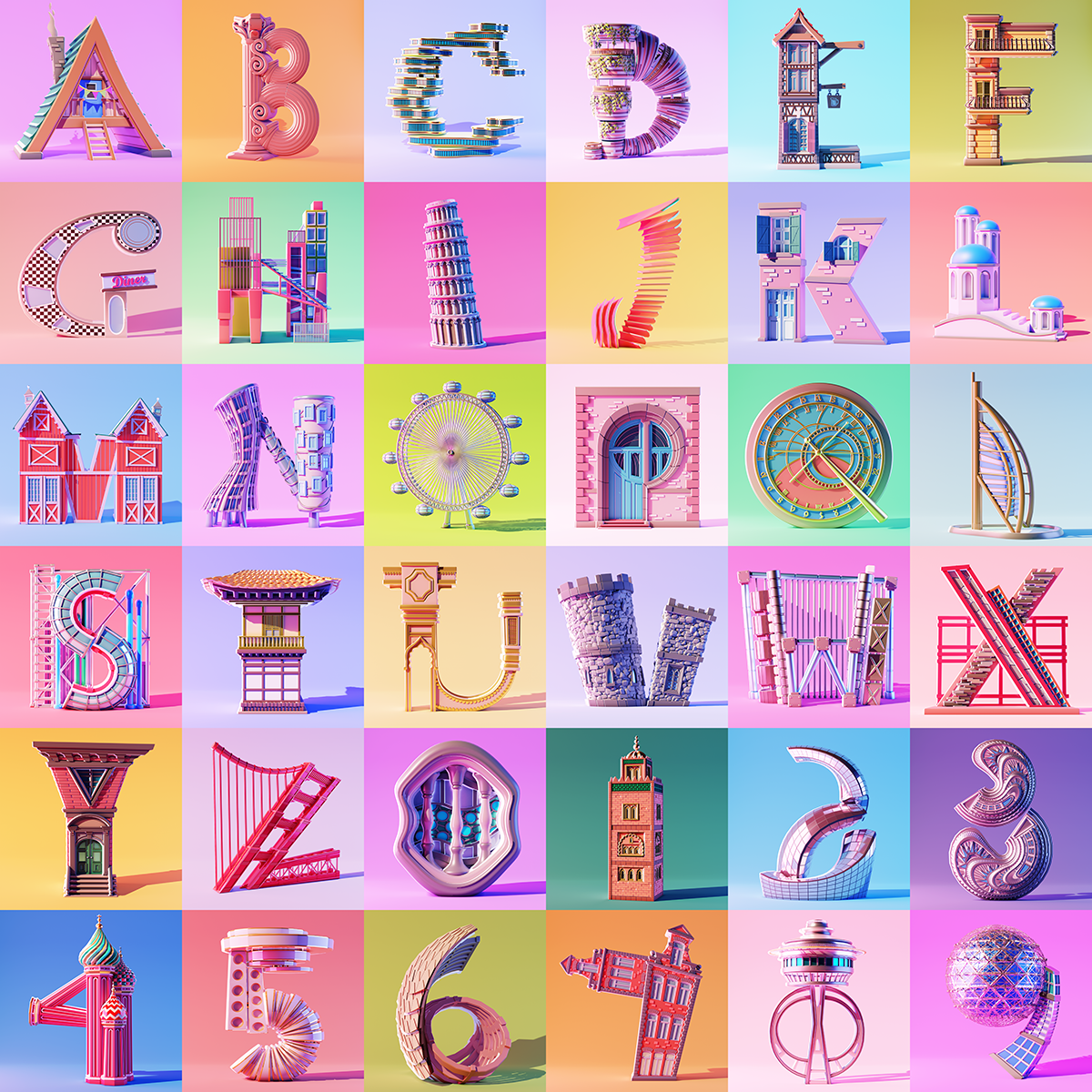 I am thrilled to share my submission for the 36 Days of Type Challenge 2021! I decided to base the alphabet and numbers 0-9 on different styles and motifs from architecture. See specific details below
